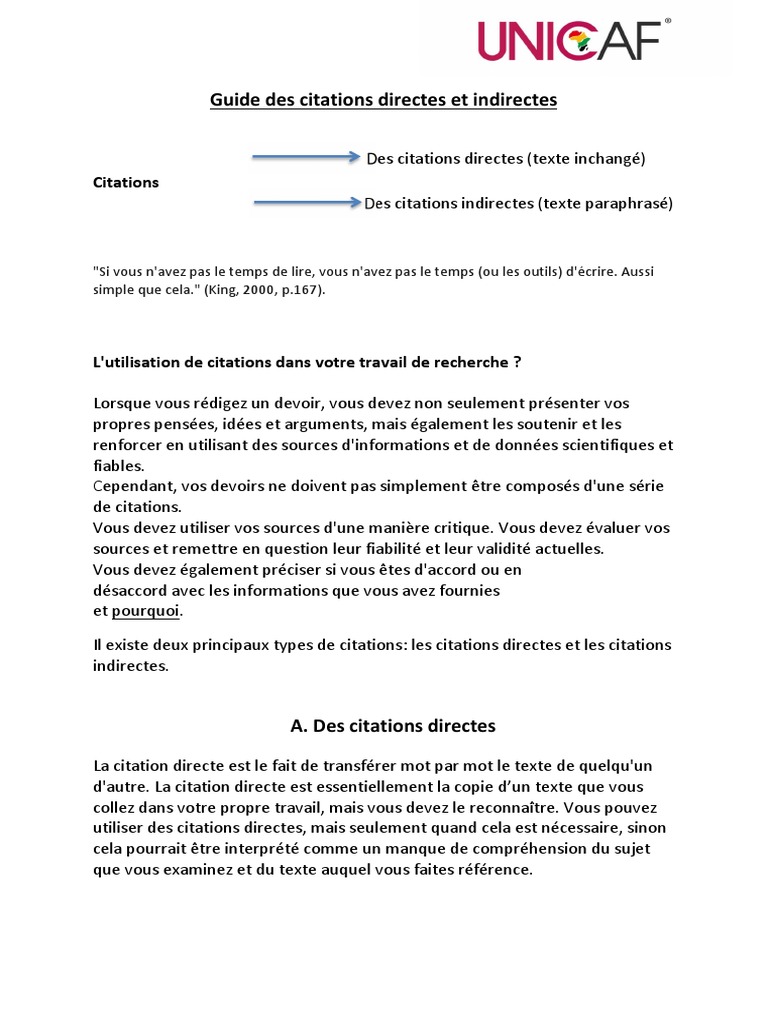 Guide Des Citations Directes Et Indirectes De L Unicaf Guillemet