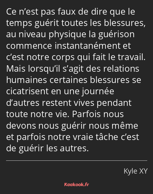 Top 10 des citations temps guérit de célébrités de films ou d internautes et proverbes temps guérit classés par auteur thématique nationalité et par culture. Le temps ne guérit pas toutes les blessures. Avec le temps notre esprit afin de mieux se protéger recouvre ses blessures de bandages et la douleur diminue. On dit souvent que le temps guérit toutes les blessures.
