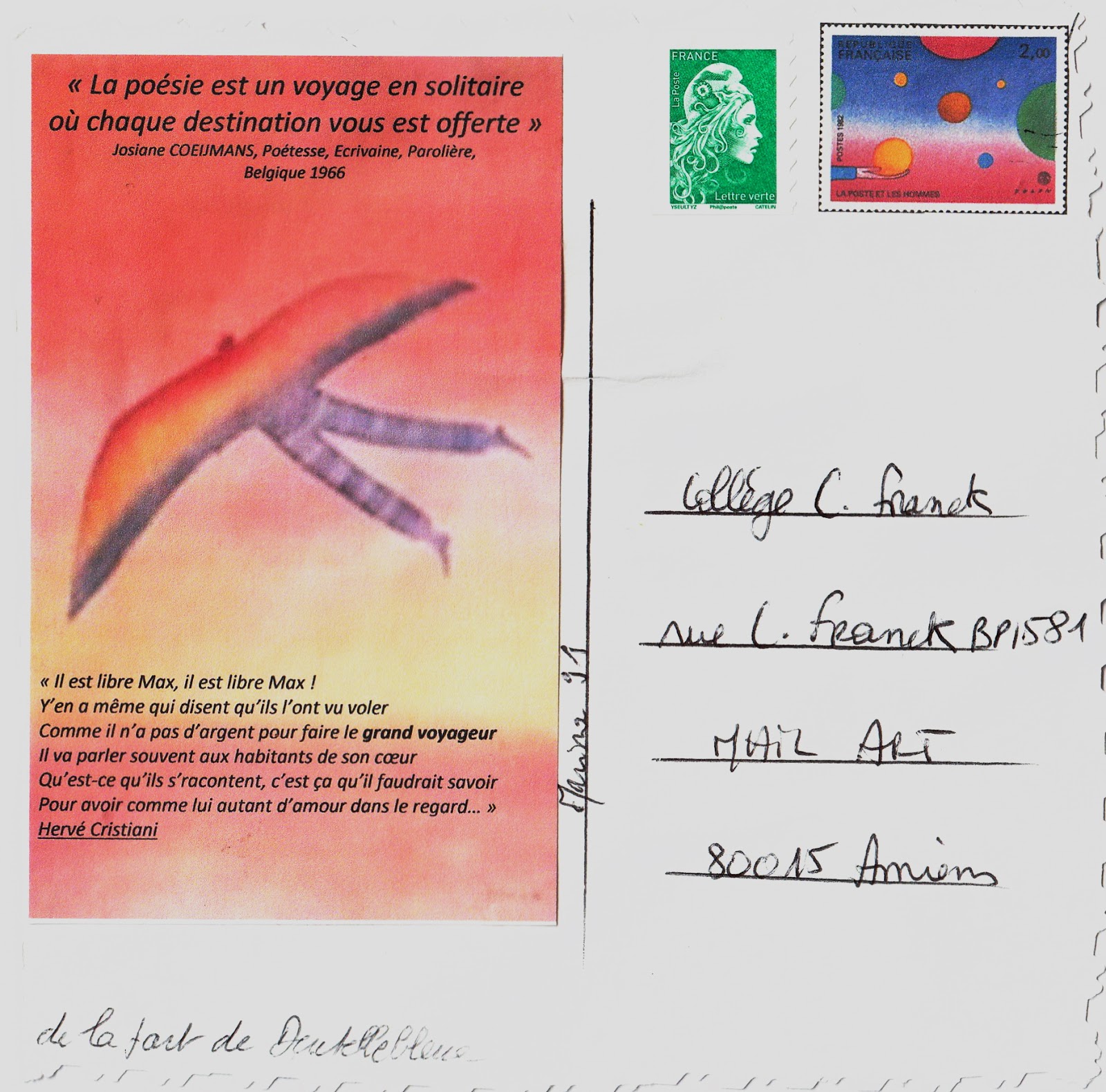 Dentellebleue S Eclate Avec Le Mail Art Poesie Et Voyage Pour Le College Cesar Franck D Amiens